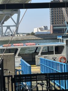 天保山の横から川向の桜島駅近くまで大阪市の渡船に乗ります。